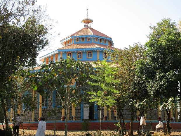 У подножју једног брда које подсећа на пирамиду, угнездила се лепа плава црква. Уским козјим путељком што раздваја степу и завршава се у зеленилу, жена у дугој белој хаљини упутила се на молитву. Крећем и ја за њом и убрзо се преда мном указује ново здање од уредно послаганог плавичастог камена.