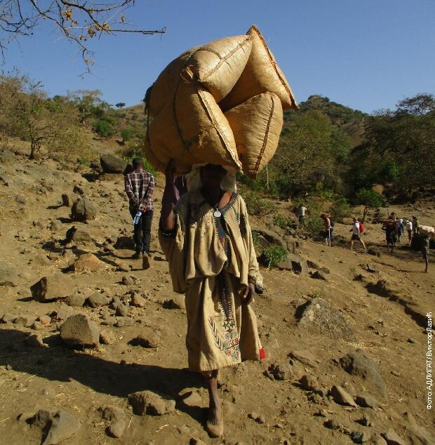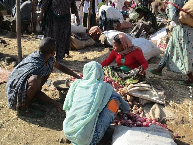 Враћамо се кроз поља тефа и других житарица. Поново долазимо до пијаце, где се крупне црвенкасте главице лука котрљају између ногу мршавих крава и оваца. Овде животиње гладују и срце ми се стеже при погледу на неухрањену стоку.