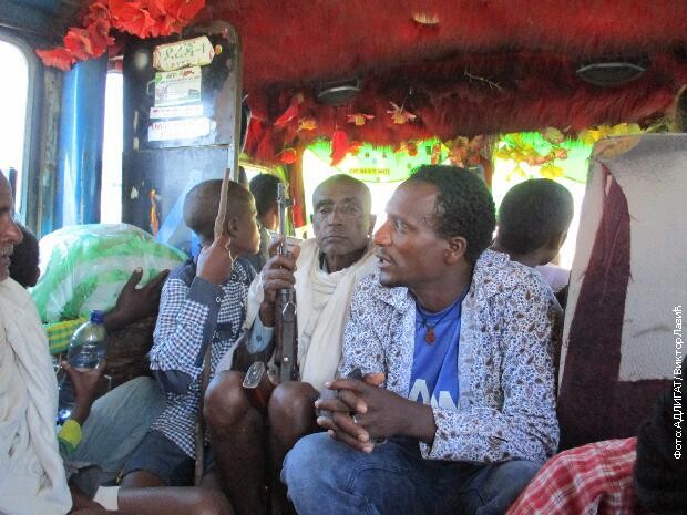 Комби смо оставили откључан и налепили на стакло натпис „Бахир Дар“ како би, док обилазимо водопаде, путници могли да се окупљају. Дочекало нас је толико људи да смо се уплашили да ће се возило преврнути ако их све примимо. Један декица нам прилази с речима: „Ја имам резервисану карту!“ Гледамо га збуњено, овде нема ни правих карти, камоли резервација. Кад он – замахне пушком и понови: „Имам карту, имам карту!“