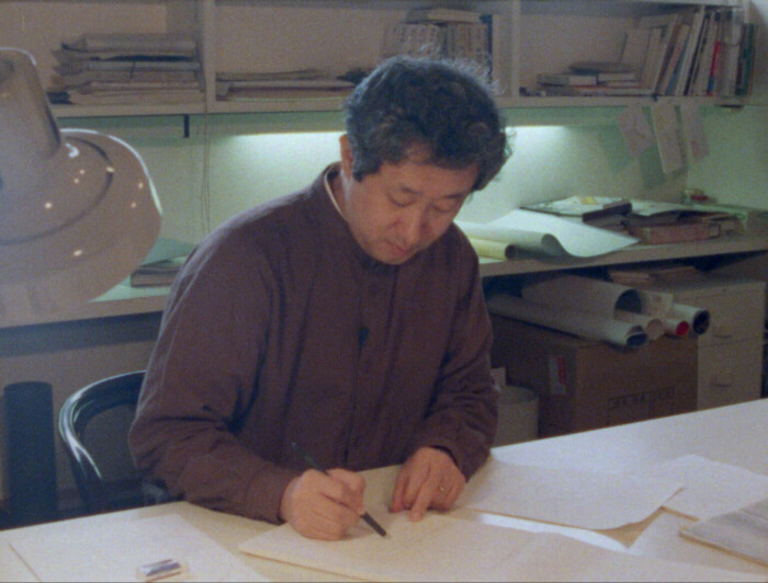 Arata Isozaki working in his office, Japan, 1986 © Film still from Arata Isozaki: Early Work in Japan (1986)