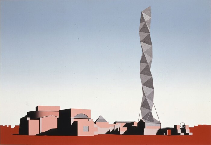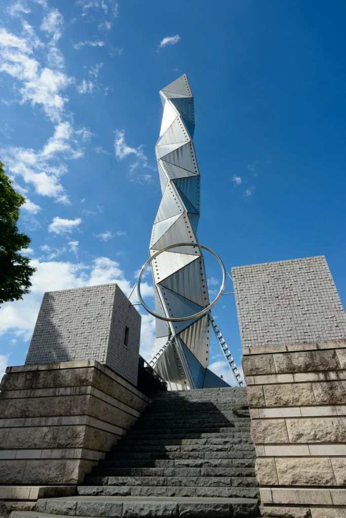 Toranj je izrađen od čelika i oblikovan kao geometrijska spirala koja se uvija prema nebu, simbolizujući dinamiku umetnosti i kulture. Isozaki je ovde spojio funkcionalne prostore za različite umetničke discipline sa monumentalnim obeležjem koje je postalo vizuelni simbol grada.