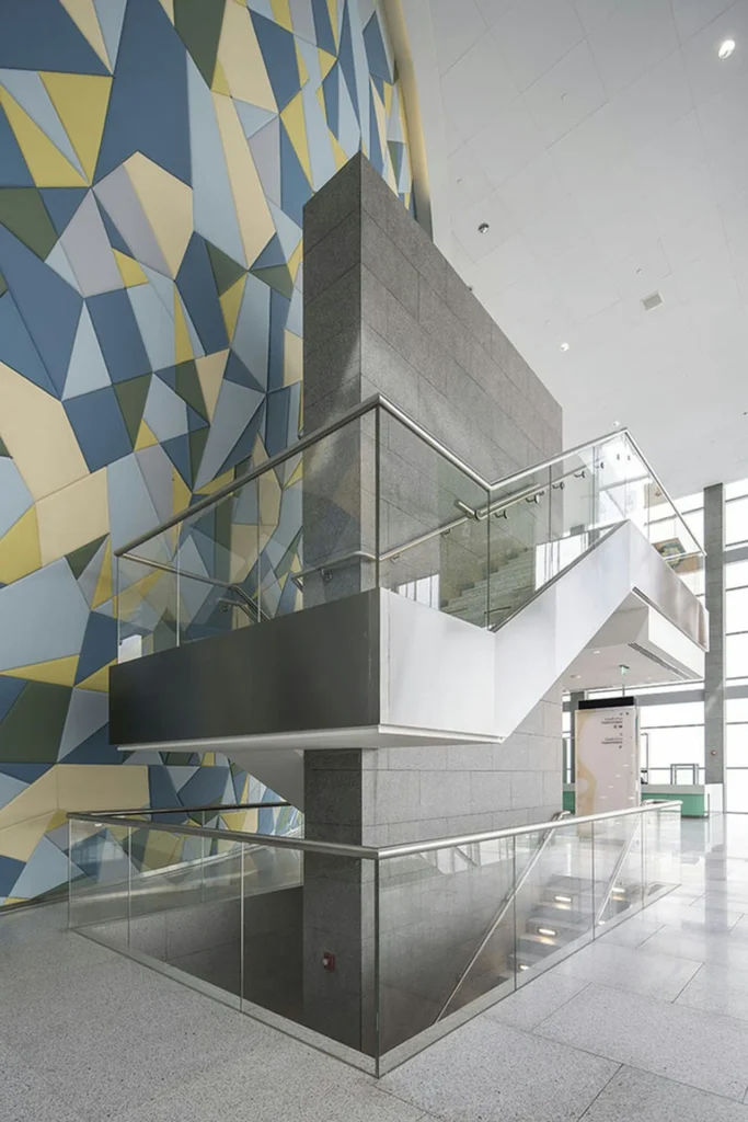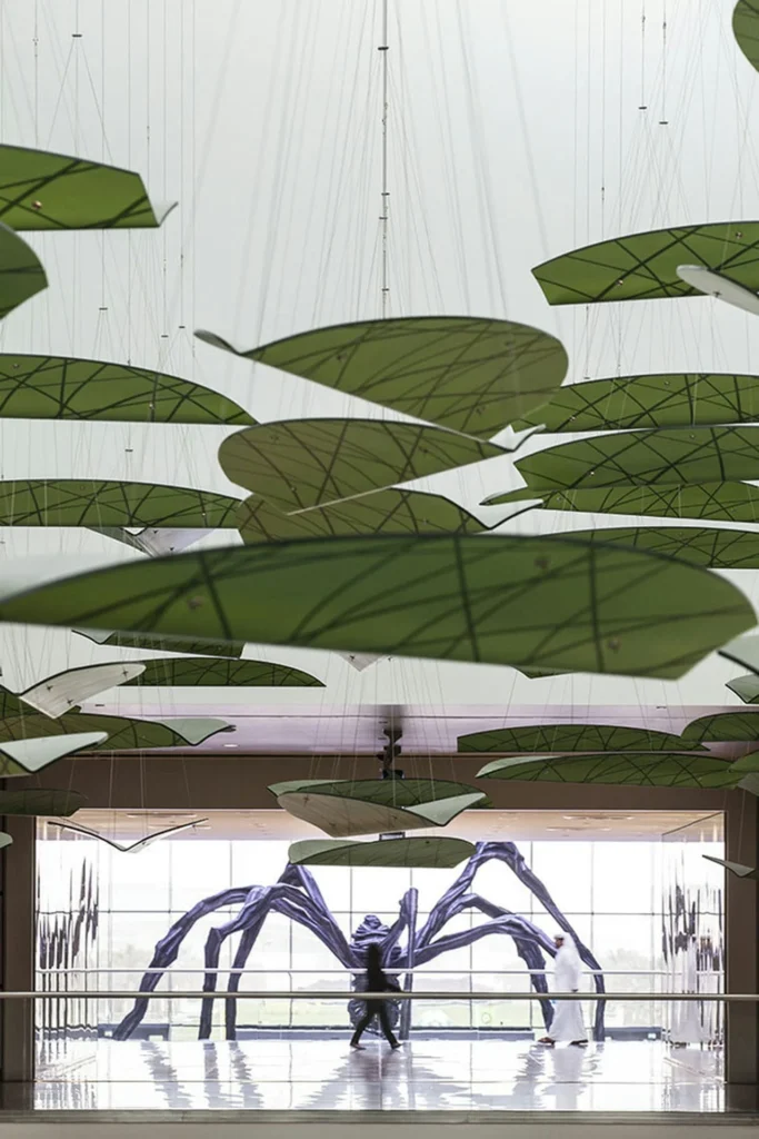 Najprepoznatljiviji element zgrade je fasada u obliku drveća, inspirisana Sidrom drvetom (Sidra Tree), koje u katarskoj tradiciji simbolizuje znanje, učenje i okupljanje. Ova monumentalna čelična struktura deluje kao prirodna mreža grana koje podržavaju ulazni prostor, stvarajući snažan vizuelni identitet.